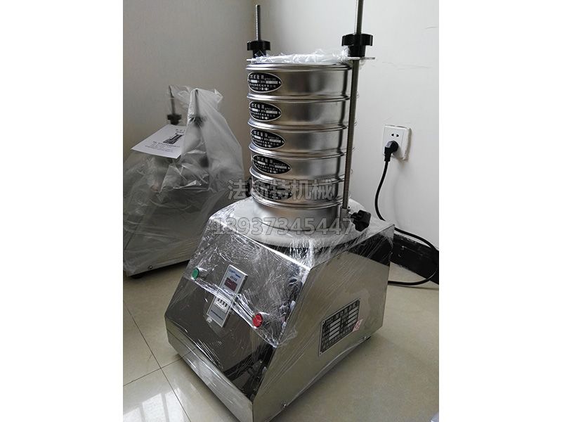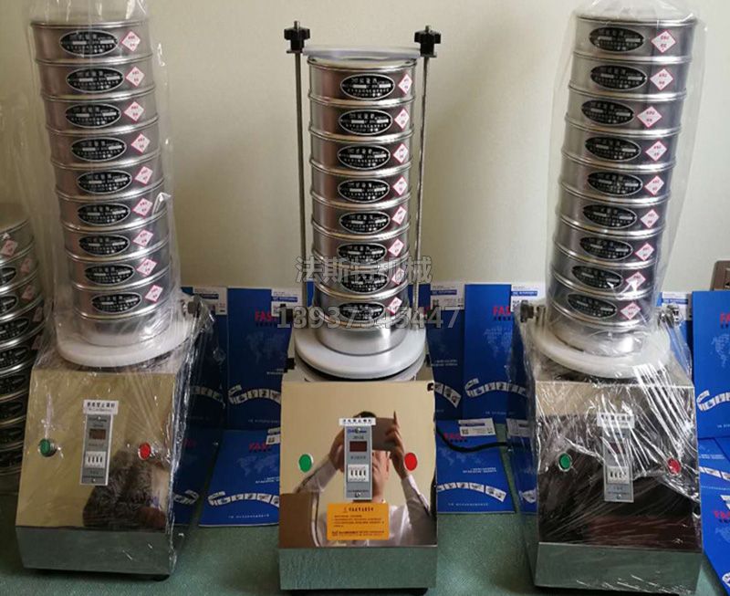 試驗振動篩通過振動電機帶動上部振動盤振動,再通過振動盤傳導(dǎo)至按放在振動盤上部的國標試驗篩框,然后,把小于篩框孔徑的物料篩分至下層篩框,如此層層篩選,使每層試驗篩內(nèi)留下相同粒度的物料,達到不同粒度的分離分選,并確定此物料的粒度組成。