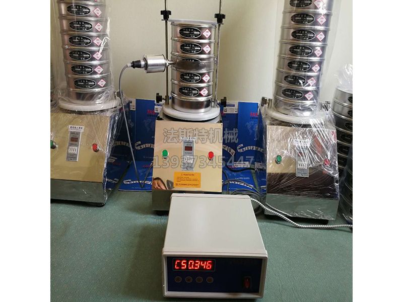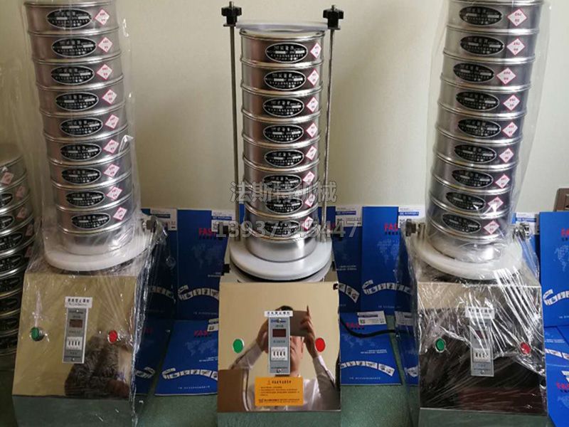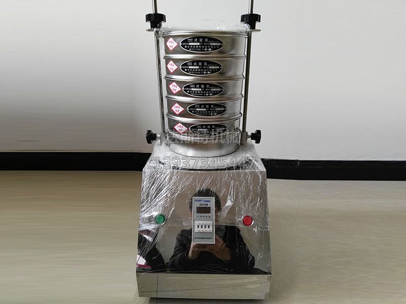 試驗(yàn)振動(dòng)篩通過(guò)振動(dòng)電機(jī)帶動(dòng)上部振動(dòng)盤(pán)振動(dòng),再通過(guò)振動(dòng)盤(pán)傳導(dǎo)至按放在振動(dòng)盤(pán)上部的國(guó)標(biāo)試驗(yàn)篩框,然后,把小于篩框孔徑的物料篩分至下層篩框,如此層層篩選,使每層試驗(yàn)篩內(nèi)留下相同粒度的物料,達(dá)到不同粒度的分離分選,并確定此物料的粒度組成。